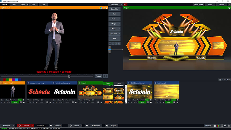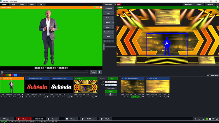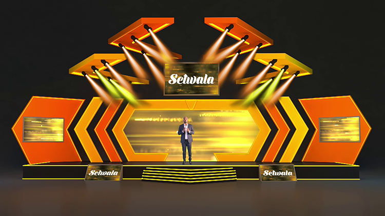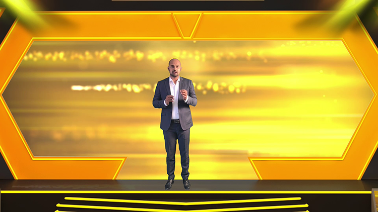 A virtual awards stage design for vMix built in an elegant yellow and gold theme creates a premium, celebratory atmosphere perfect for high-profile recognition events. The stage incorporates sleek arrow growth elements within the design, symbolizing success, progress, and achievement—making it especially suitable for corporate awards, annual recognitions, and leadership events. Multiple integrated screens allow users to easily update graphics in real time, whether it’s nominee visuals, winner announcements, sponsor branding, or thematic backgrounds. The layout is thoughtfully structured to maintain a clean yet grand look, ensuring every visual element enhances the storytelling of the event.
