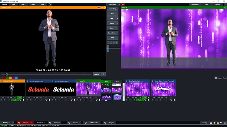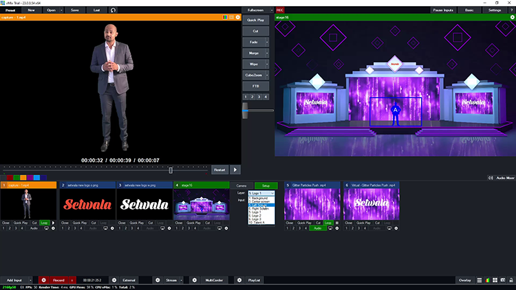 Built for ease of use, the set supports real-time live camera input integration, enabling presenters or performers to be added seamlessly through green screen as on-stage talent. This creates a natural and immersive experience, blending live elements with the virtual environment. The setup also includes five one-click portable camera movements with smooth transitions, including zoom-in and zoom-out effects, allowing operators to switch perspectives effortlessly. Designed for both beginners and professionals, this vMix virtual set delivers a polished broadcast experience with minimal effort while maintaining full flexibility and control over the production.