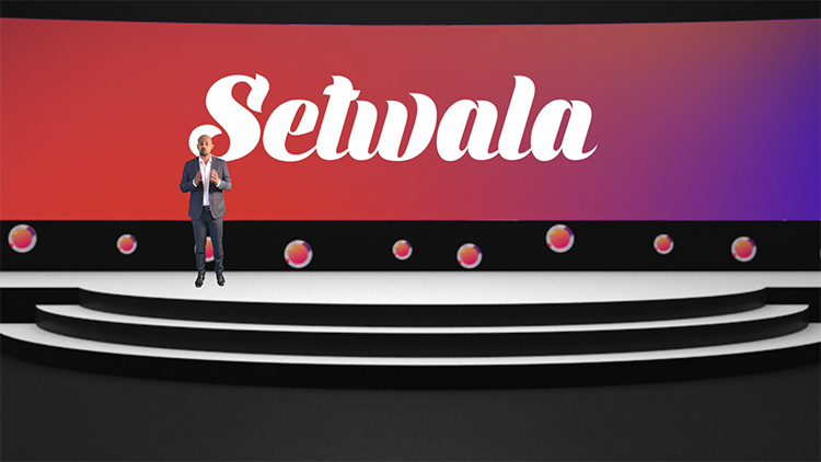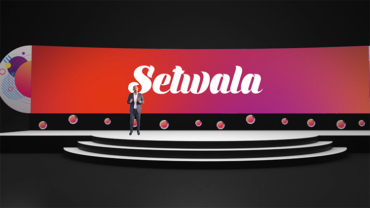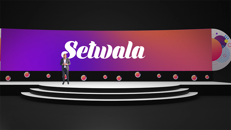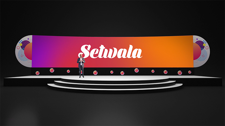 An ultra-wide curved screen set for virtual events creates a highly immersive broadcast environment designed to enhance audience engagement and visual impact. The curved display wraps around the virtual stage, giving depth and cinematic scale to presentations, making it ideal for conferences, webinars, product launches, and hybrid events. It allows multiple real-time live talent inputs to be placed naturally within the scene, enabling presenters, hosts, and panelists to appear integrated inside a unified virtual environment rather than separate or flat compositions.