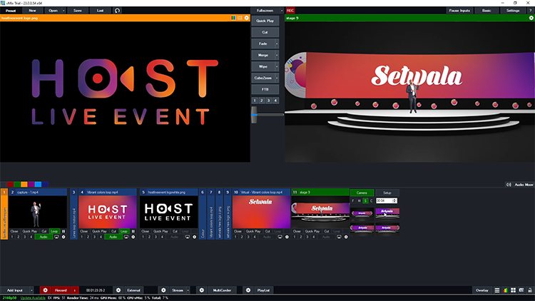 For production control, the stage includes four predefined camera presets with smooth zoom-in, zoom-out, and pan movements. These fixed camera angles simplify live operation, making it accessible even for beginners while still maintaining professional broadcast quality. Combined with intuitive vMix control, this ensures fast switching between wide shots, close-ups, and dynamic angles, delivering a polished, real-time virtual production experience with minimal technical effort.